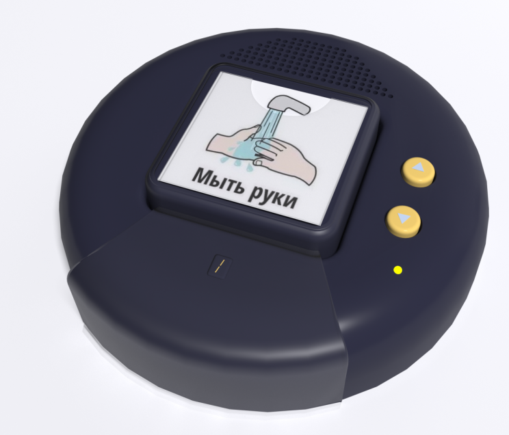 Кнопка-игровой коммуникатор №2 предназначена для социализации детей, которые имеют проблемы со слуховым, визуальным, тактильным восприятием и коммуникацией. На круглом компактного размера корпусе имеются 2 кнопки для переключения между уровнями и громкостью. Длительность одного сообщения – 60 секунд, общее количество записываемых голосовых сообщений – 10. В центре корпуса расположен ЖК-дисплей с кармашком для демонстрационных карточек. Устройство изготовлено из высококачественного ударопрочного пластика, имеет обтекаемые плавные формы без острых краёв и углов. Коммуникатор адаптирован для российских пользователей: устройство имеет встроенную аккумуляторную батарею с зарядным устройство в комплекте и преподавателю не придется покупать еженедельно новые батарейки.