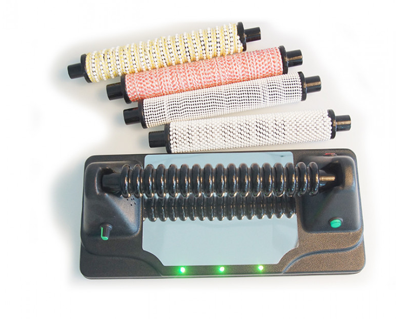 - Набор включает подставку и пять взаимозаменяемых текстурированных роликов, которые обеспечивают тактильную стимуляцию.