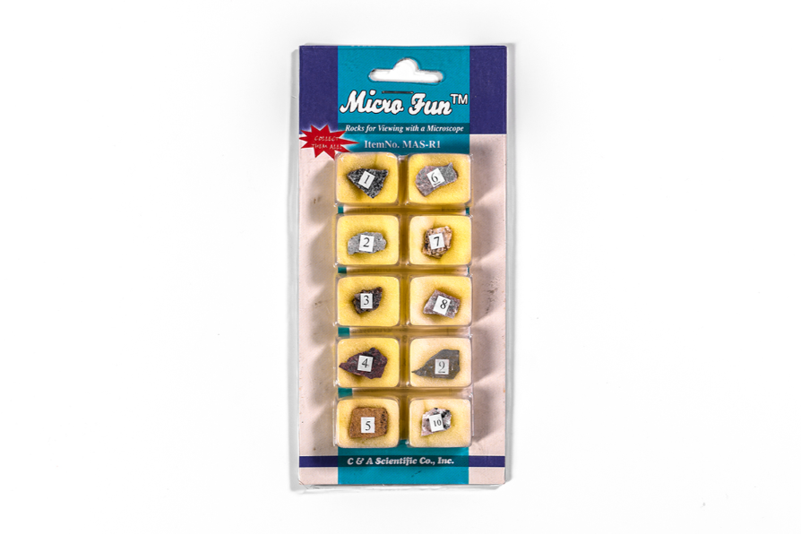 Данные препараты для стереомикроскопа – настоящие минералы, с большинством из которых вы никогда ранее не встречались. В процессе изучения станет понятно, как эти минералы дополняют друг друга, чтобы получились объекты, которые вы видите каждый день: дороги, здания, мебель.