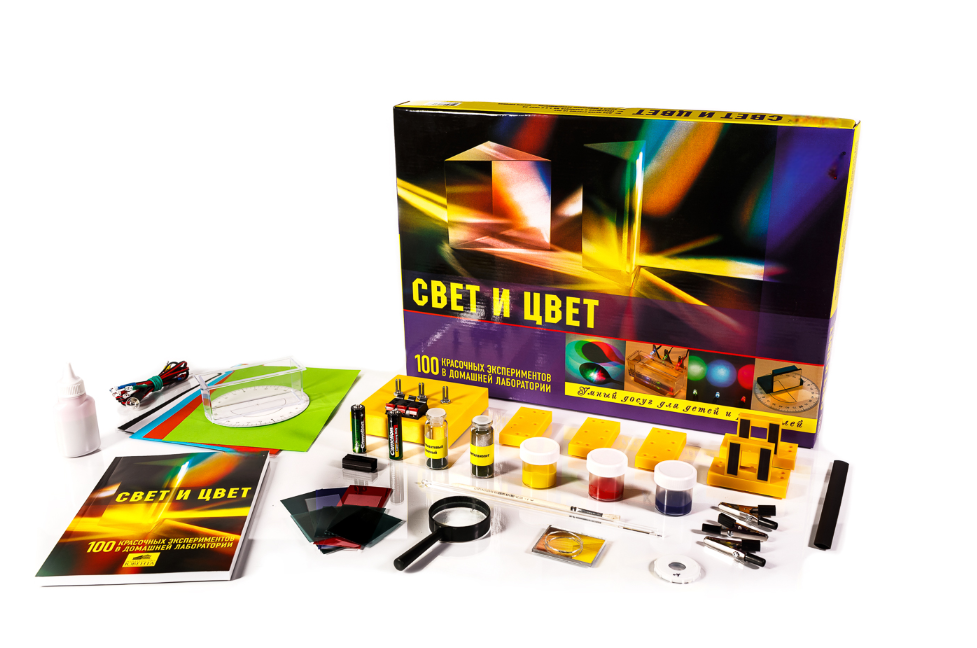 Набор «Свет и цвет» предназначен для всех, кого интересуют загадки цветного зрения. Руководство с комплектом оборудования позволяет провести более 100 красочных опытов, связанных с цветовым зрением и восприятием света.