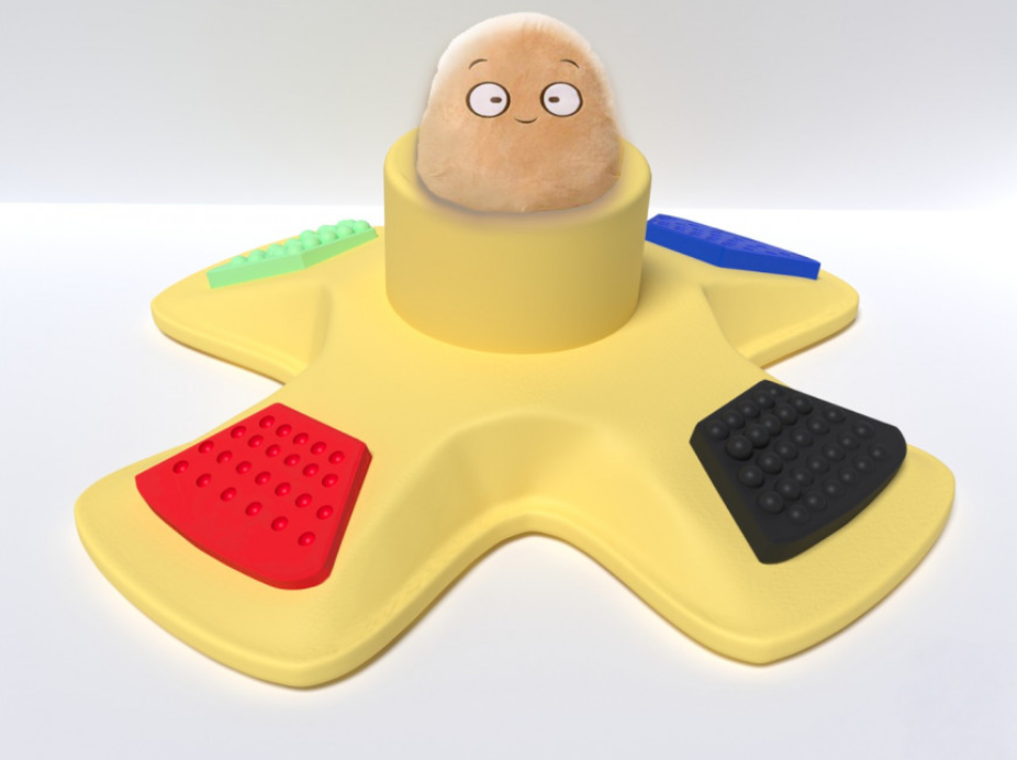 «Горячая картошка» принесёт детям много радости и сделает игровой процесс более веселым. С помощью этого устройства можно обучить азам коммуникации и слуховому восприятию даже ребёнка со сложностями развития. Игра рассчитана на 4-х игроков; для каждого на корпусе есть кнопки (специальные тактильные переключатели).