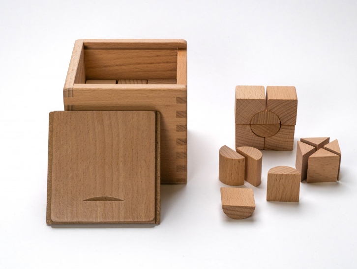 Третий: восемь маленьких кубиков, объединенных в один большой «куб из кубиков». Отличное подспорье в усвоении таких понятий, как «часть», «половина», «целый предмет», «одна четверть» и др.