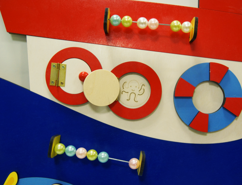 Бизиборд представленной модели – оптимальное решение для небольших помещений. Ведь он сохраняет игровую ценность, экономя пространство. Им можно оборудовать компактный детский уголок в кафе, ресторане или магазине, детской поликлинике или другом учреждении. Все края закруглены и обработаны по специальной технологии, что гарантирует безопасность в использовании даже самыми маленькими детками.