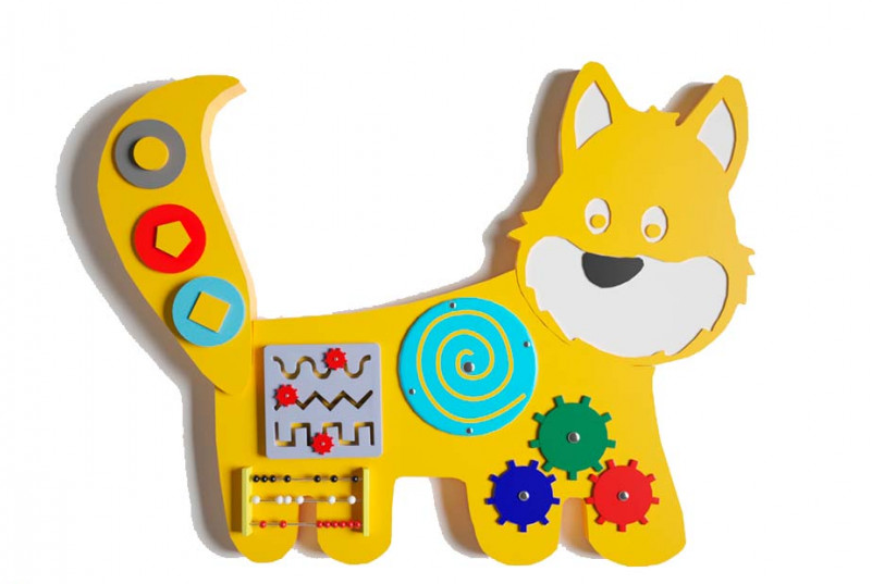 Настенный бизиборд, который будет интересен и увлекателен для детей разных возрастов. Его форма и изображение лисы познакомят ребенка с миром животных, интересен будет так же, как персонаж из любимых сказок. У бизиборда нет острых углов, поверхность не оставляет заусенцы. Бизиборд в виде лисички можно использовать для дома, для дошкольных учреждений, для медицинских клиник и для развлекательных центров. Играть можно как вместе с ребёнком, описывая ему каждый предмет и рассказывая, для чего он нужен, так и наблюдая за игрой малыша.