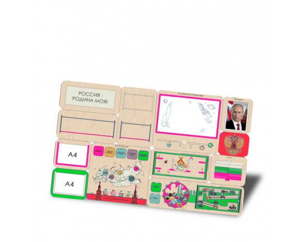 Дидактическая настенная панель на патриотическую тематику - это красивая игровая зона, которая выполнена из качественных материалов и не оставляет зацепок в детских ручках. На панели изображена важная и полезная информация для детей: флаги, герб и традиции России, главное место в столице, фотография президента. Игры на панели вызовут особый интерес: изучение полезных ископаемых, флаг, который можно собрать самому, доска для рисования. Подойдет для детских центров, специальных дошкольных учреждений, больниц. В Дидактическая настенная панель на патриотическую тематику можно играть как группой детей, так и индивидуально.