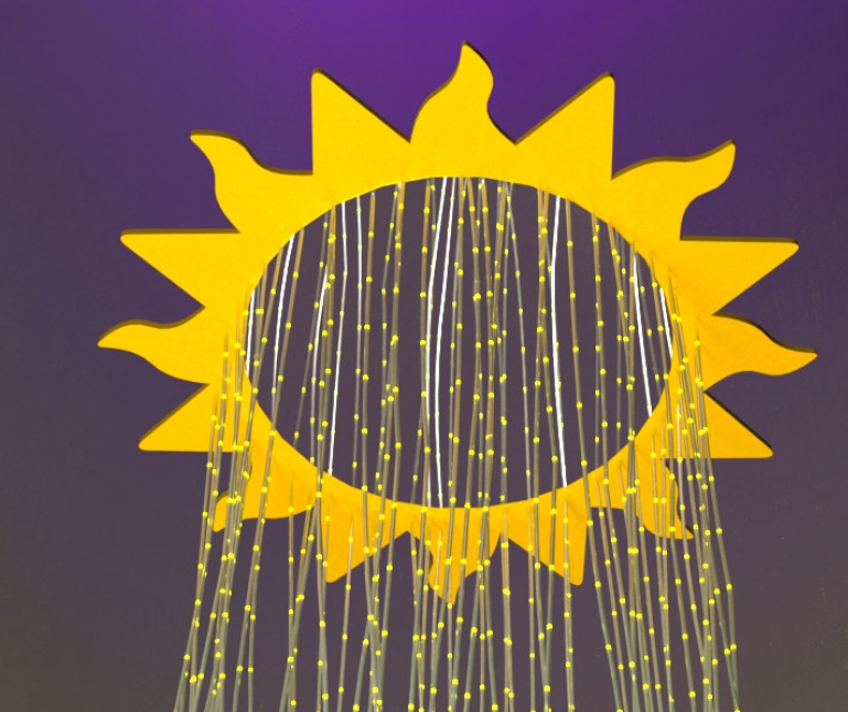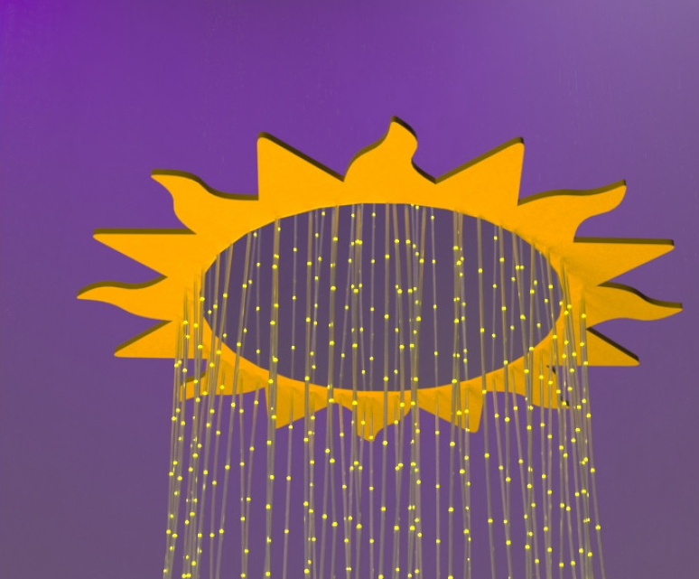 Фибероптический душ в виде солнышка станет отличным дополнением в сенсорную комнату. С помощью этого изделия у детей развивается зрительная память, снимается стресс и поднимается настроение. Модуль Солнышко выполнен из специального волокна в оболочке премиального качества. Само солнышко сделано из высококачественной фанеры, окрашенной водными красками. Одним из главных достоинств является мощный источник света, при котором волокна хорошо светятся даже днём, так что не обязательно затемнять комнату шторами. Изделие выполнено из натуральных материалов, и отвечает всем требованиям безопасности. В комплекте идет беспроводной пульт управления, переключающий режимы работы. Изделие поставляется в собранном виде в упаковке, предотвращающей повреждения при транспортировке.