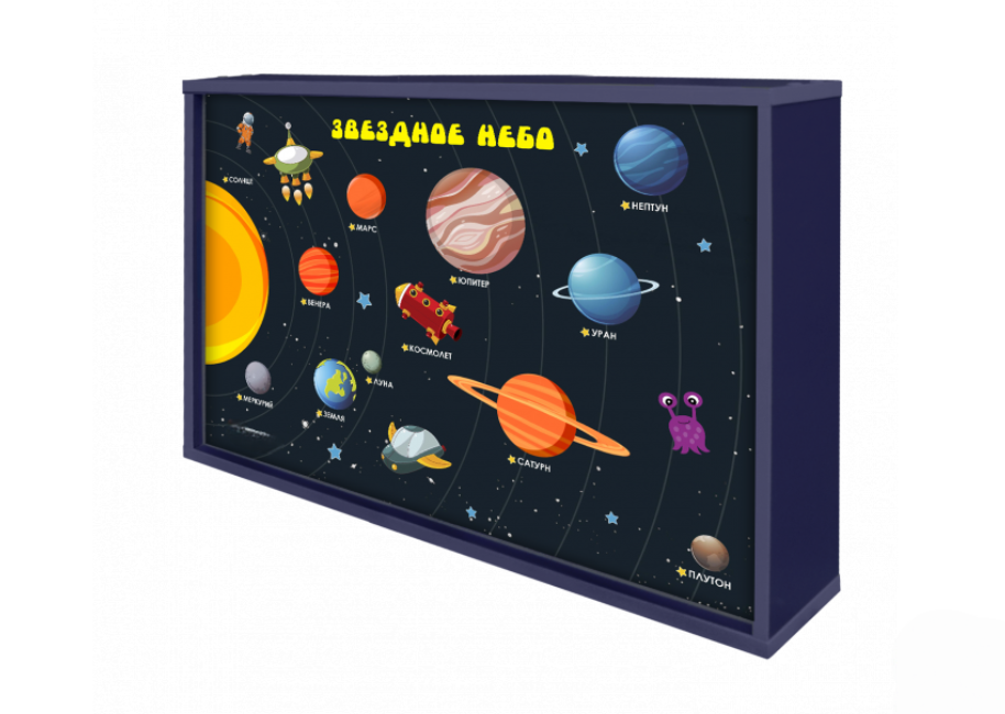 - В панели реализована интерактивная игра – загадки. При включенной панели, после взаимодействия с ней через 5 сек. после бездействия воспроизводится одна из детских загадок про элементы, изображенные на панели. Отгадав загадку, малыш должен нажать на теплочувствительный датчик элемента, к которому относится данная загадка. Если ответ верный, вы услышите один из 2-х подтверждающих звуковых сигналов и аплодисменты. Если ответ не верный, малышу будет предложено попробовать еще раз, так же по средствам одного из 4-х звуковых сигналов. В случае если игра не продолжается панель прощается с малышом «Ладно, поиграем в другой раз».