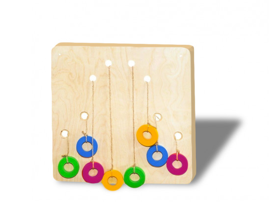 Тактильная панель с цветными кольцами - это красивая игровая зона, выполненная из качественных материалов и не оставляет зацепок в детских ручках. Большая панель имеет 8 отверстий, от каждого идет веревка. В конце нитка привязана к кольцу, длина веревок у всех разная. Тактильная панель заинтересует как маленьких детей, так и постарше, а родителям поможет сохранить дом в целости и сохранности. Она подойдет для домашнего использования и для специальных учреждений.
