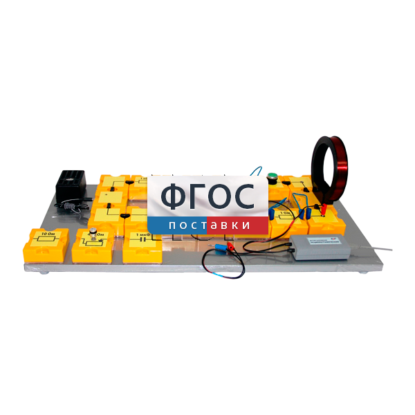 Элементы электрической цепи смонтированы в специальных боксах, на лицевой стороне которых находится обозначение элементы. Для объединения элементов в электрическую цепь используются жесткие соединители. Зарядка конденсатора осуществляется от источника постоянного тока при включении первого кнопочного выключателя. Разрядка конденсатора через элементы контура происходит при замыкании второго кнопочного выключателя. Регистрация данных осуществляется с помощью осциллографического датчика напряжения, который фиксирует напряжения на одном или двух выбранных элементах электрической цепи.