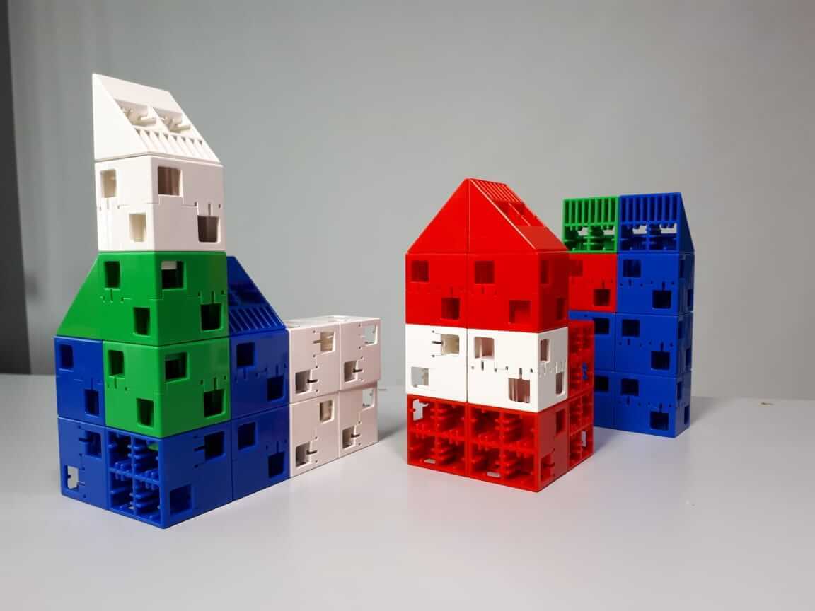 Инновационные кубики – универсальная основа набора. Оригинальная запатентованная конструкция позволяет соединять их буквально во всех направлениях (более 50 комбинаций), вплоть до соединения вдоль главной диагонали кубов. Это значительно расширяет возможности по конструированию самых разнообразных объектов, начиная от традиционных дорожек и домиков, животных и машин и заканчивая фигурками современных роботов.