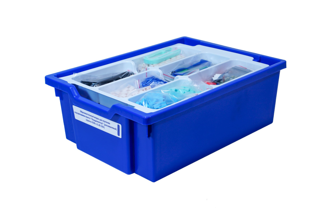 Весь набор укомплектован в пластиковую систему хранения, которая закрывается пластиковой прозрачной крышкой на защелках для обеспечения наблюдения за содержимым.