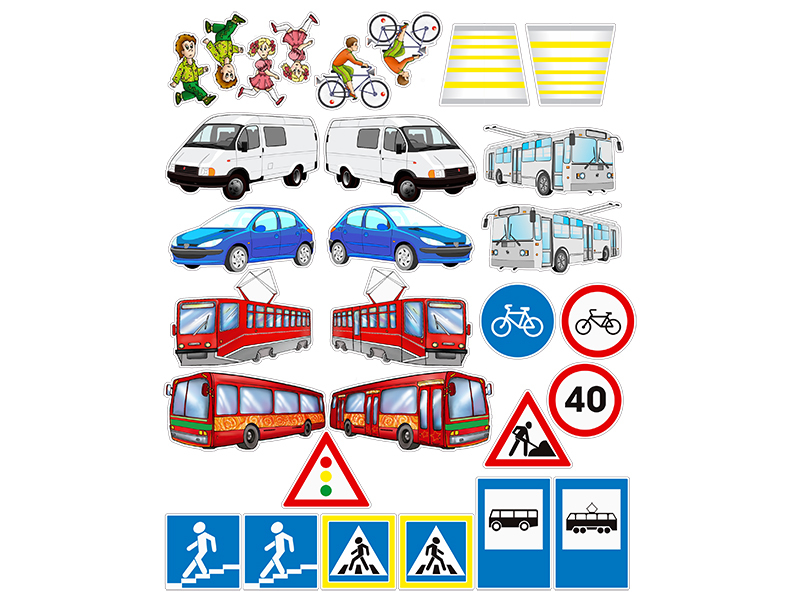 В комплект поставки входит набор цветных маркеров для нанесения записей на доску и комплект тематических магнитов "Безопасный маршрут школьника" в виде транспортных средств, дорожных знаков, дорожной разметки, пешеходов и велосипедистов для моделирования различных дорожных ситуаций.