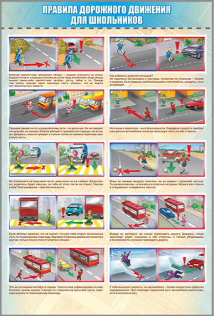Стенды представляют собой информационные панели, на которых размещены правила дорожного движения для школьников как юных участников дорожного движения.