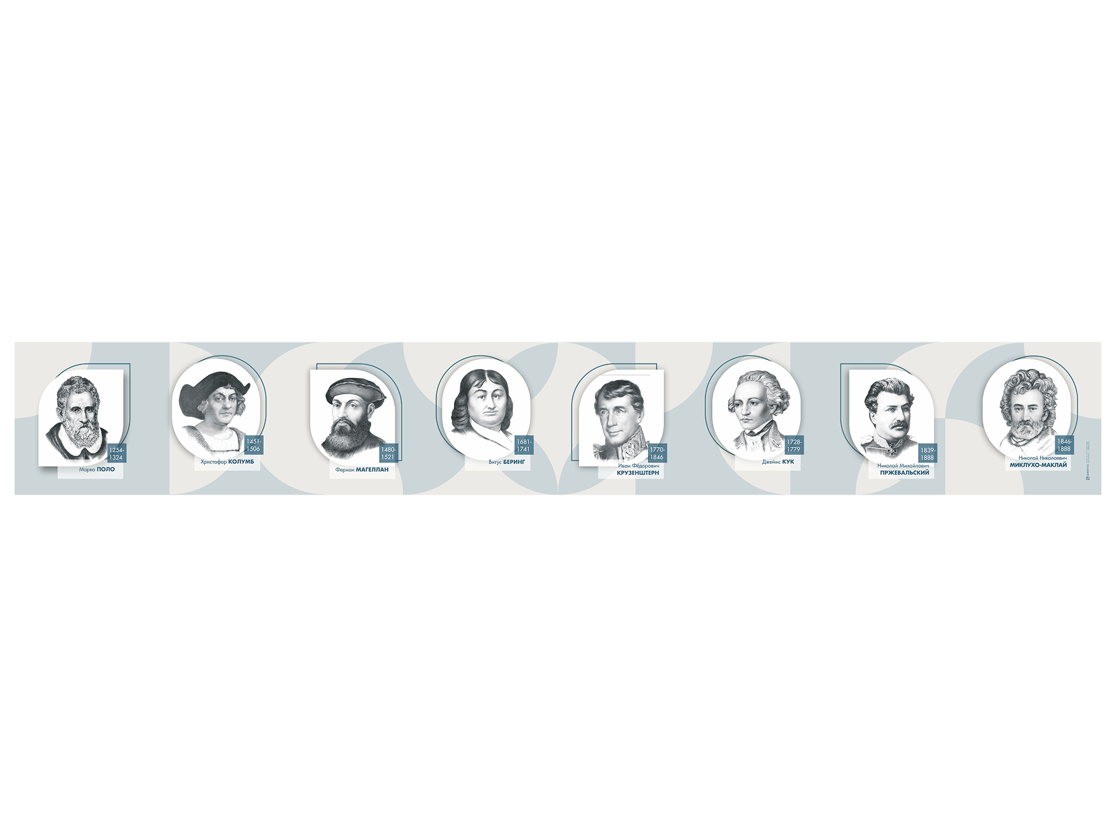 Стенд-лента "Выдающиеся путешественники и ученые-географы"
