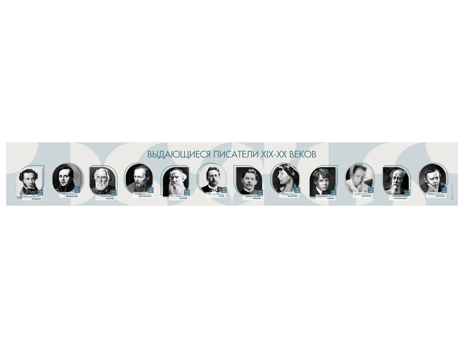 Стенд-лента представляет собой панель, на которой размещена информация о выдающихся русских писателях.
