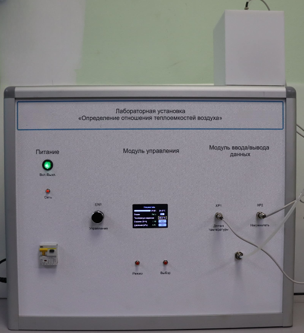 Лабораторный модуль представляет собой герметичный калориметр, выполненный из белого акрила. Для изменения температуры воздуха на дне калориметра расположен нагреватель. Температура измеряется при помощи датчика температуры. Для интенсивного рассеивания тепла, применяются радиаторы, установленные непосредственно на нагреватели.