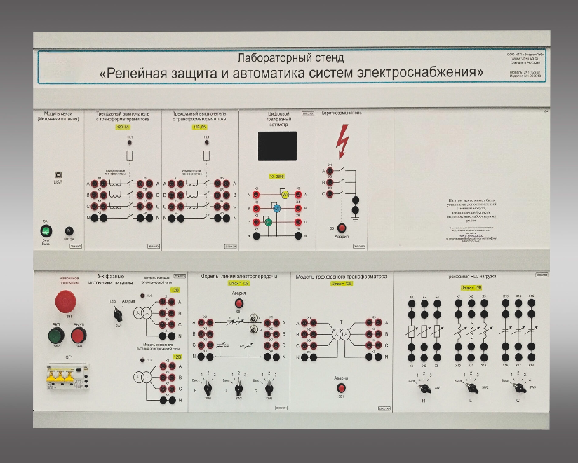 Комплект лабораторного оборудования «Релейная защита и автоматика систем электроснабжения» предназначен для проведения лабораторно-практических занятий в учреждениях начального профессионального, среднего профессионального и высшего профессионального образования, для получения базовых и углубленных профессиональных знаний и навыков.