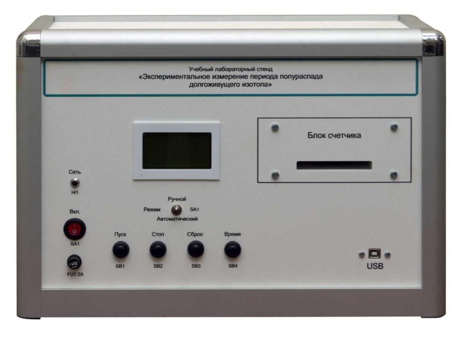 Учебная лабораторная установка «Измерение периода полураспада долгоживущего изотопа» позволяет воспроизвести серии измерений интенсивности излучения от радиоактивного источника 40К в соли KCl (количество актов радиоактивного распада), определить активность изотопа и вычислить период полураспада.