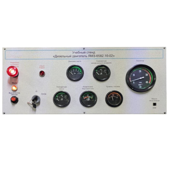 На лицевой панели размещены основные штатные приборы индикации рабочих параметров двигателя (тахометр, индикаторы температуры охлаждающей жидкости и масла).