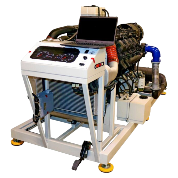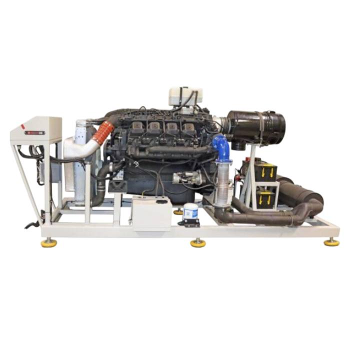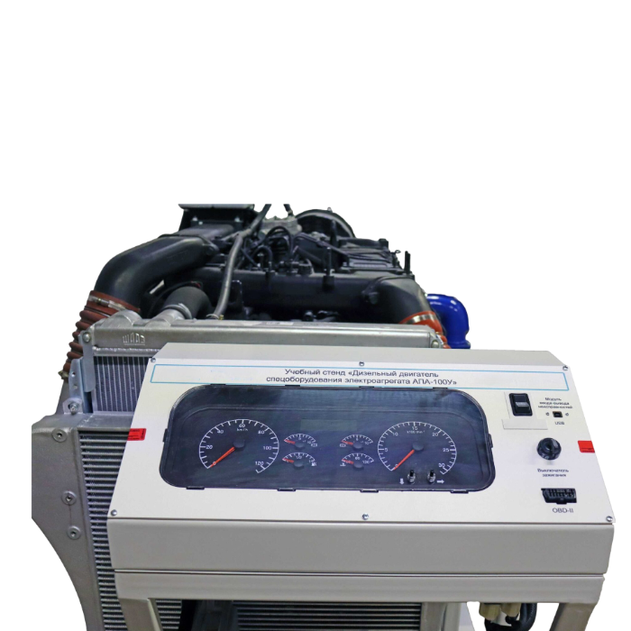 На стенде смонтирована система охлаждения двигателя с радиатором, система топливоподачи с топливным баком, система отвода отработанных газов с глушителем, система электрооборудования. На лицевой панели размещены основные штатные приборы индикации рабочих параметров двигателя (тахометр, индикаторы температуры охлаждающей жидкости и масла). Пуск двигателя обеспечивается при помощи выключателя стартера и приборов. Выбор режима работы двигателя при работе без нагрузки (в режиме «холостого хода») обеспечивается изменением частоты вращения коленчатого вала с панели управления стенда. Лицевые панели и панель управления стенда имеют защитное порошковое покрытие.