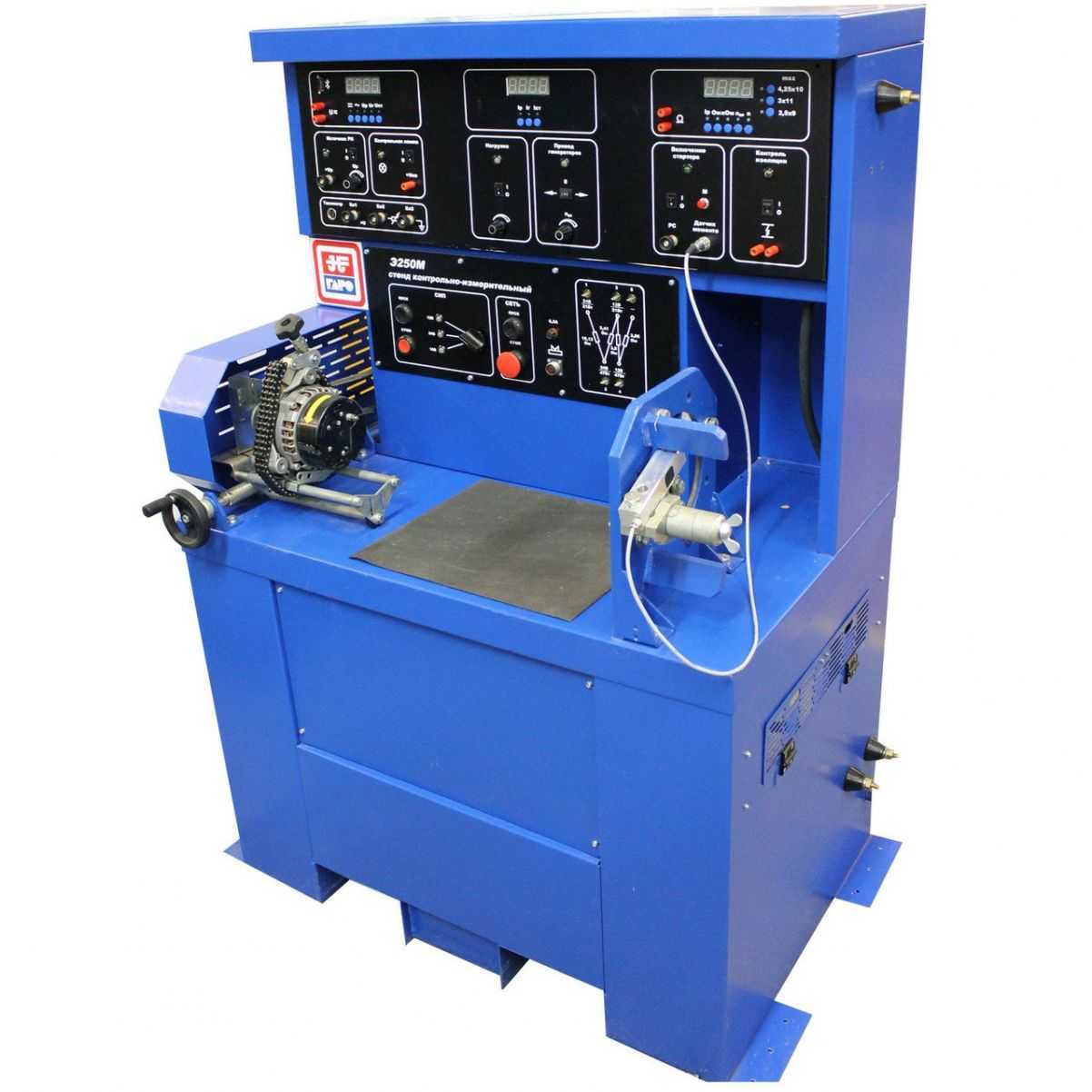 Контрольно-испытательный стенд для контроля и регулировки снятого с автомобиля электрооборудования: генераторов, стартеров, реле-регуляторов, тяговых реле стартеров, реле-прерывателей, коммутационных реле, электроприводов агрегатов автомобиля, обмоток якорей, полупроводниковых приборов, резисторов.