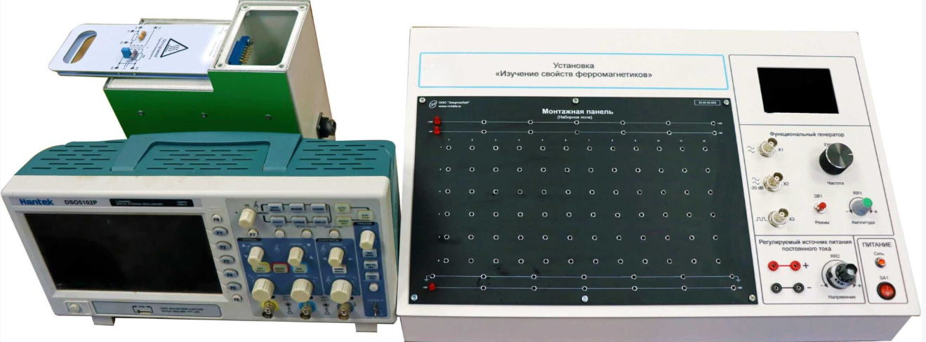 Лабораторная установка предназначена для изучения свойств ферромагнетиков, представляет собой моноблок, выполненный из пластика или любого другого диэлектрического материала.