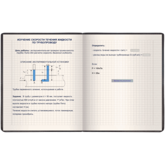 Программный продукт виртуальный лабораторный практикум «Гидравлика» предназначен для интерактивного выполнения лабораторных работ по основным положениям гидравлики: иллюстрация течения жидкости, уравнения Бернулли, трубки Вентури, трубки Пито-Прандля, гидравлического удара и другие.
