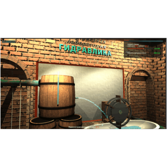 - В режиме «Виртуальная модель» предоставлена возможность изучить материал при непосредственном погружении в процесс, пользователь имеет возможность изменять основные параметры представленной в 3D модели гидравлической системы и наблюдать отклик системы на эти изменения.
