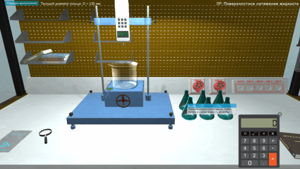 - исследование поверхностного натяжения жидкости методом отрыва кольца;